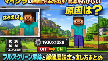 マインクラフト マイクラの画面がはみ出す・比率がおかしい原因は?フルスクリーン解除と解像度設定の直し方まとめ!