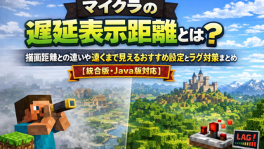 マインクラフト マイクラの遅延表示距離とは?描画距離との違いや遠くまで見えるおすすめ設定とラグ対策まとめ【統合版・Java版対応】