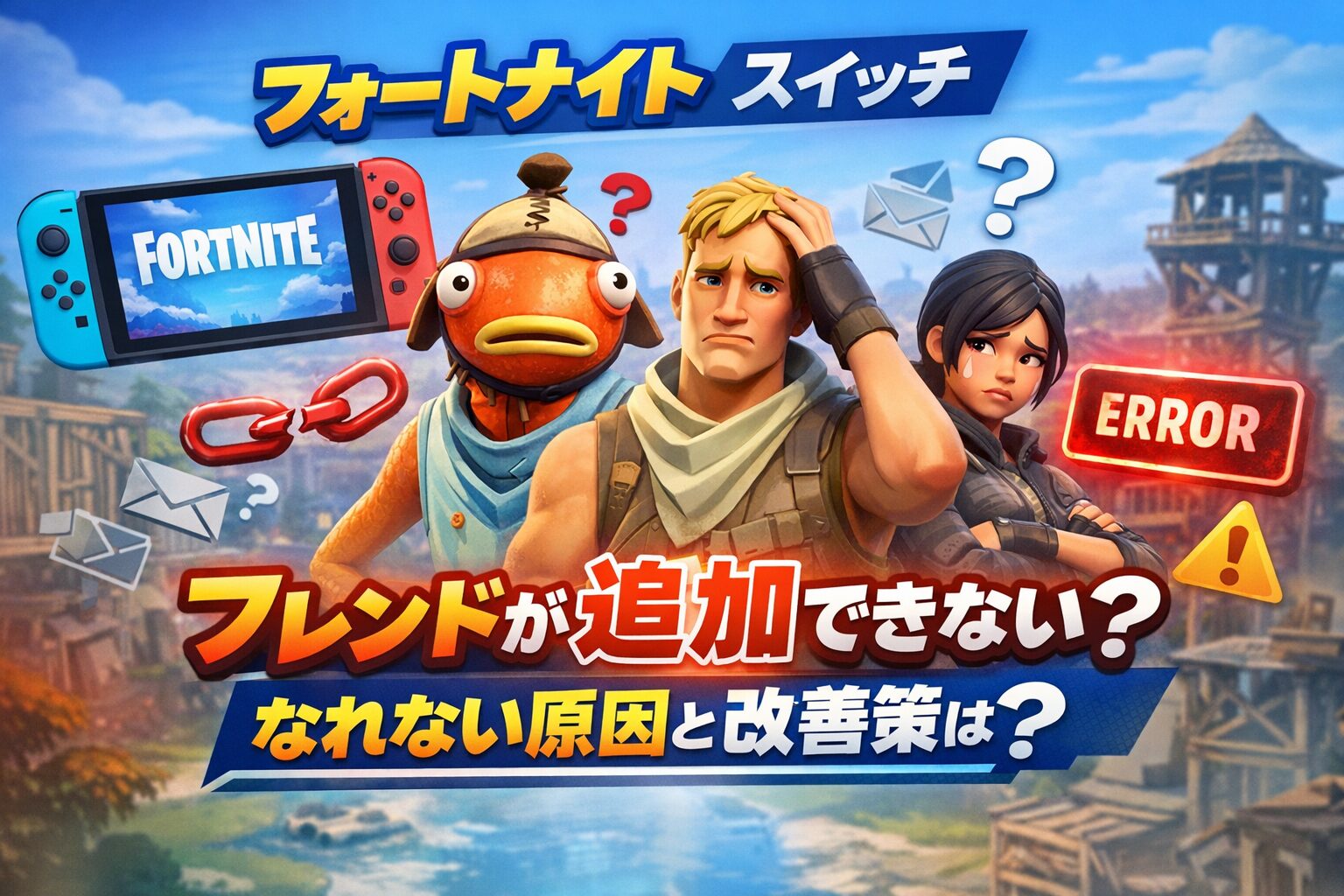 フォートナイトでSwitchのフレンドと一緒に遊ぼうとしても、フレンド申請が送れない・届かない・承認できないといったトラブルは意外と多く、悩んでいる方も多いはずです。