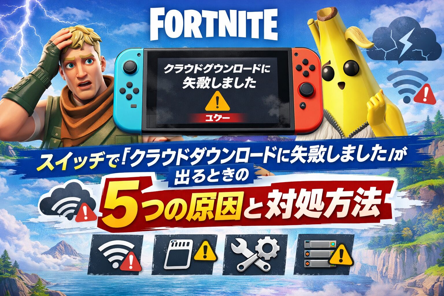 フォートナイト スイッチで「クラウドダウンロードに失敗しました」が出るときの5つの原因と対処方法!