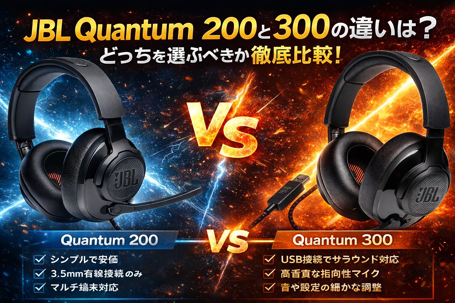 | 比較ポイント | JBL Quantum 200 | JBL Quantum 300 |