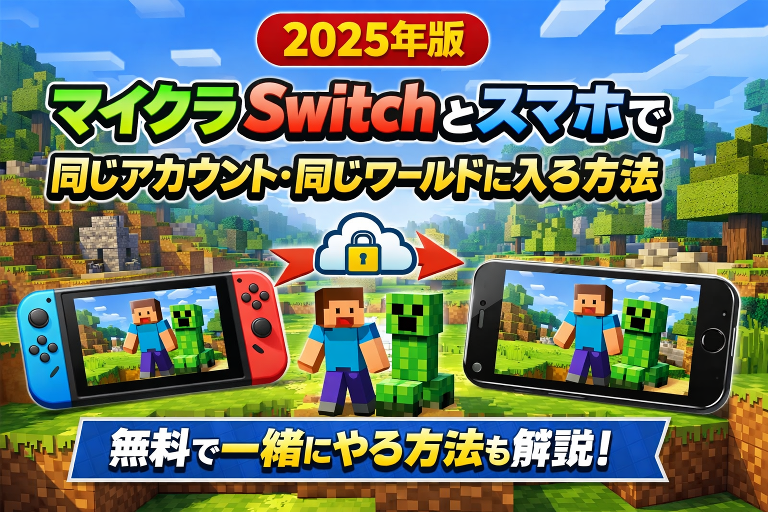 【2025年版】マイクラSwitchとスマホで同じアカウント・同じワールドに入る方法|無料で一緒にやる方法も解説!のまとめ