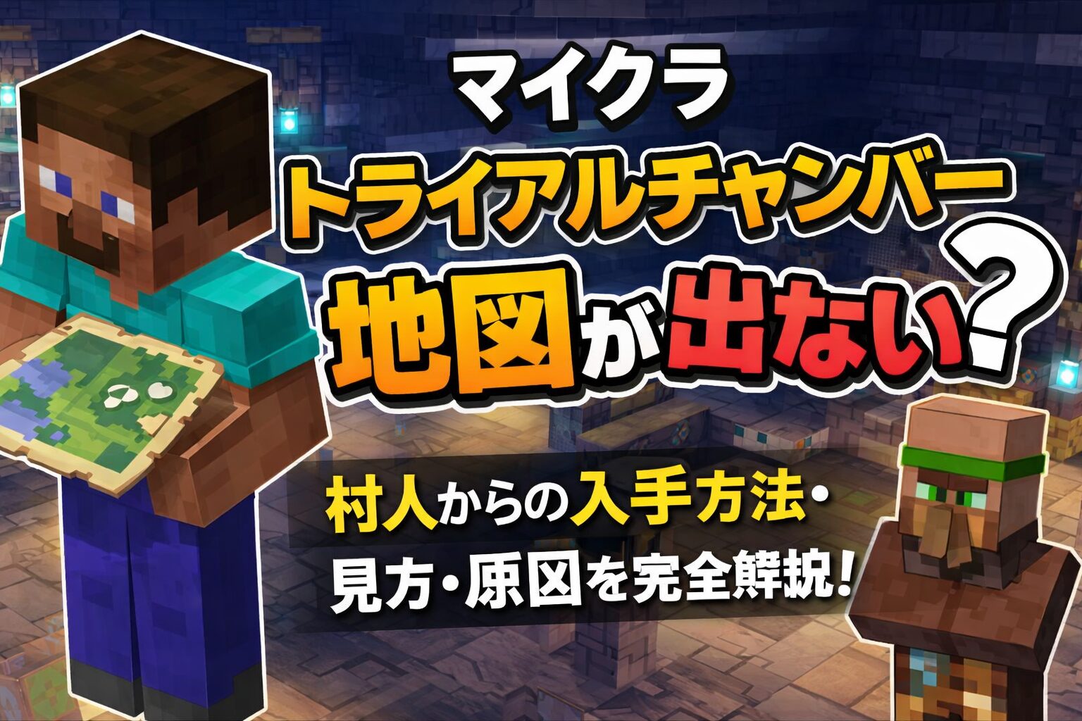 「トライアルチャンバーの地図が出ない…」「村人から手に入れたいけど方法がわからない」「地図はあるのに何も表示されない!」