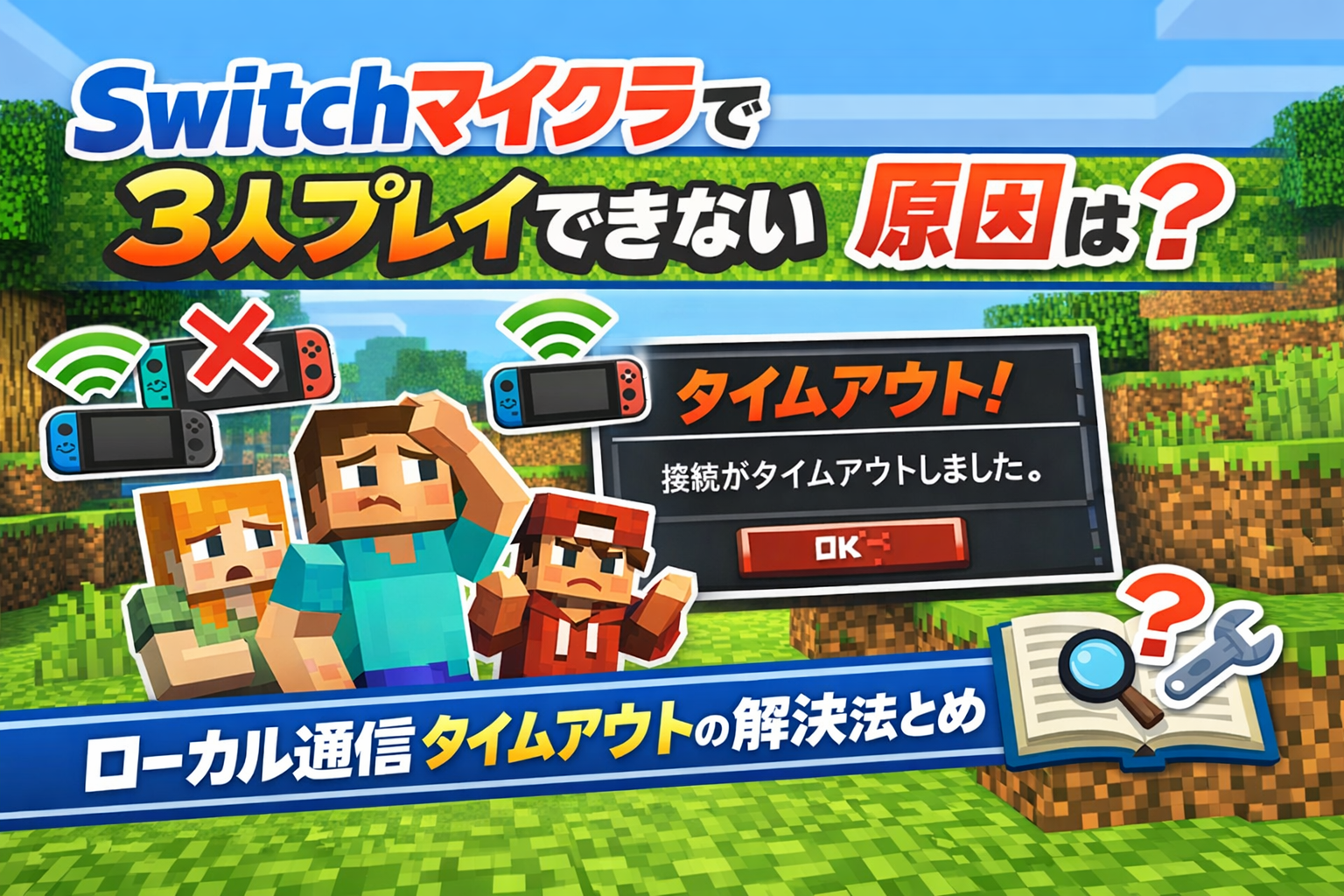 Switch版マインクラフトでローカル通信による3人以上のマルチプレイがうまくいかず、タイムアウトエラーが出る原因は実にさまざまです。