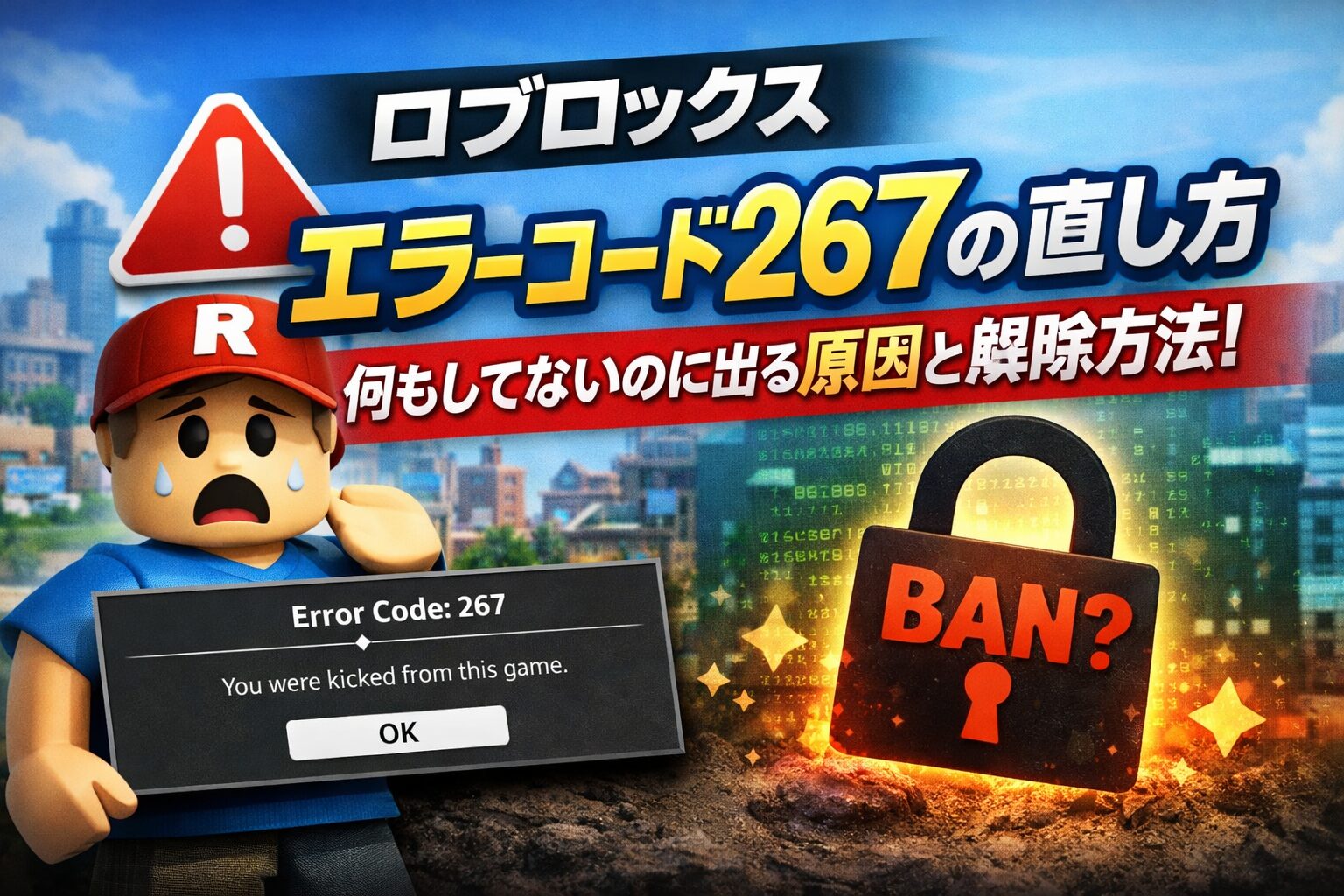 ロブロックスで突然「エラーコード267」と出ると、「え、何もしてないのに…」「BANされたの?」「もうこのまま入れないの?」とびっくりしますよね。