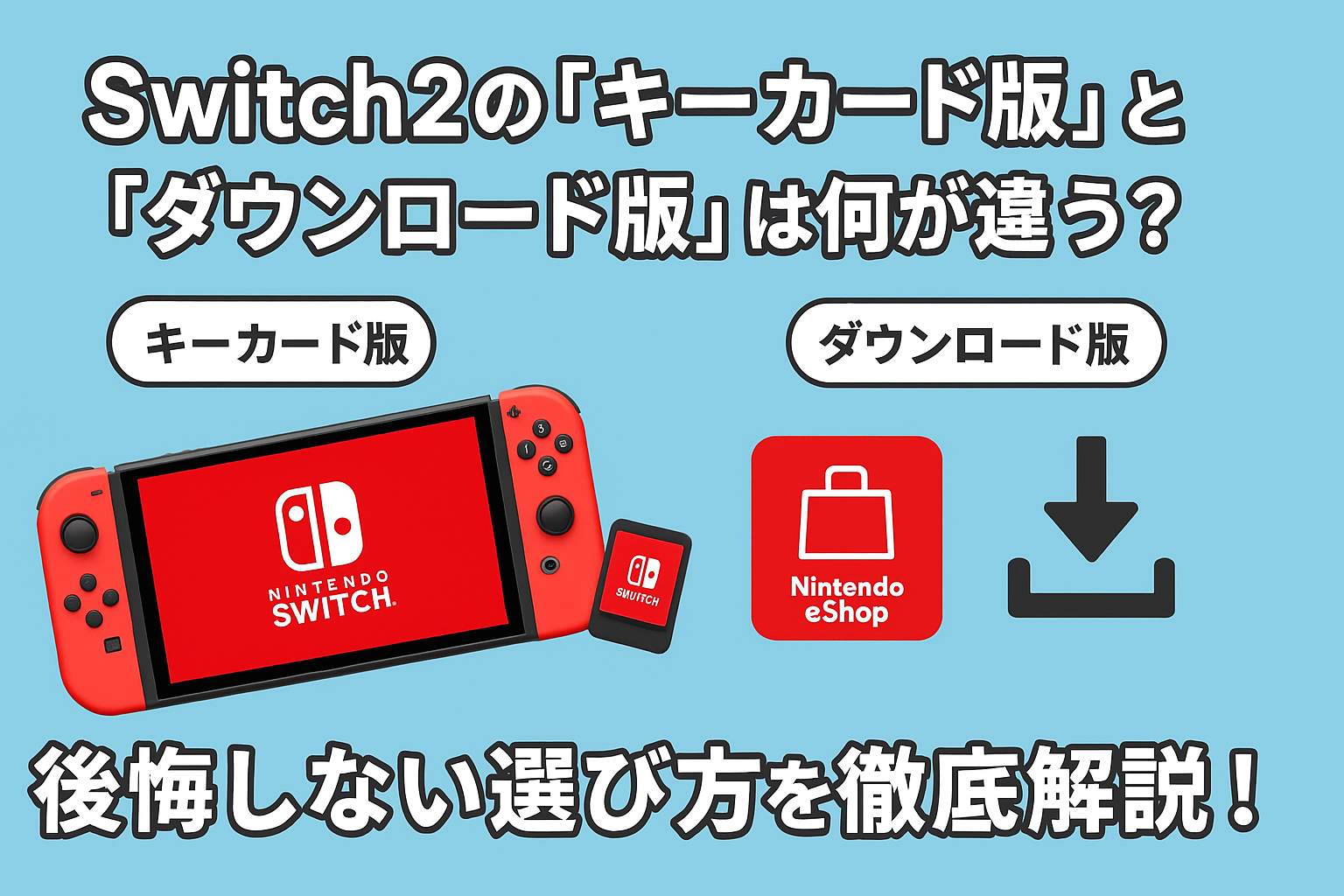 Switch2でゲームを買うとき、基本となるのは 「キーカード版(物理)」 と 「ダウンロード版(デジタル)」 の2種類です。